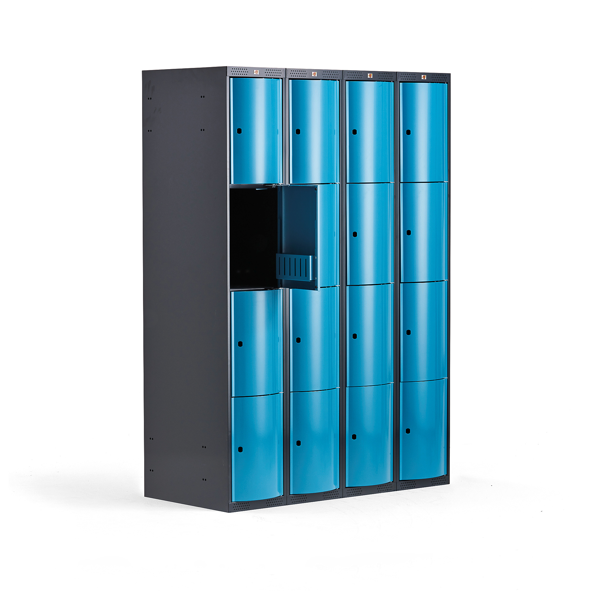 Strona główna » Szafki Fitness » Szafy » Szafki osobiste » Metalowa Szafa Ubraniowa Curve, 4x4 Drzwi, 1740x1200x550 Mm, Niebieski