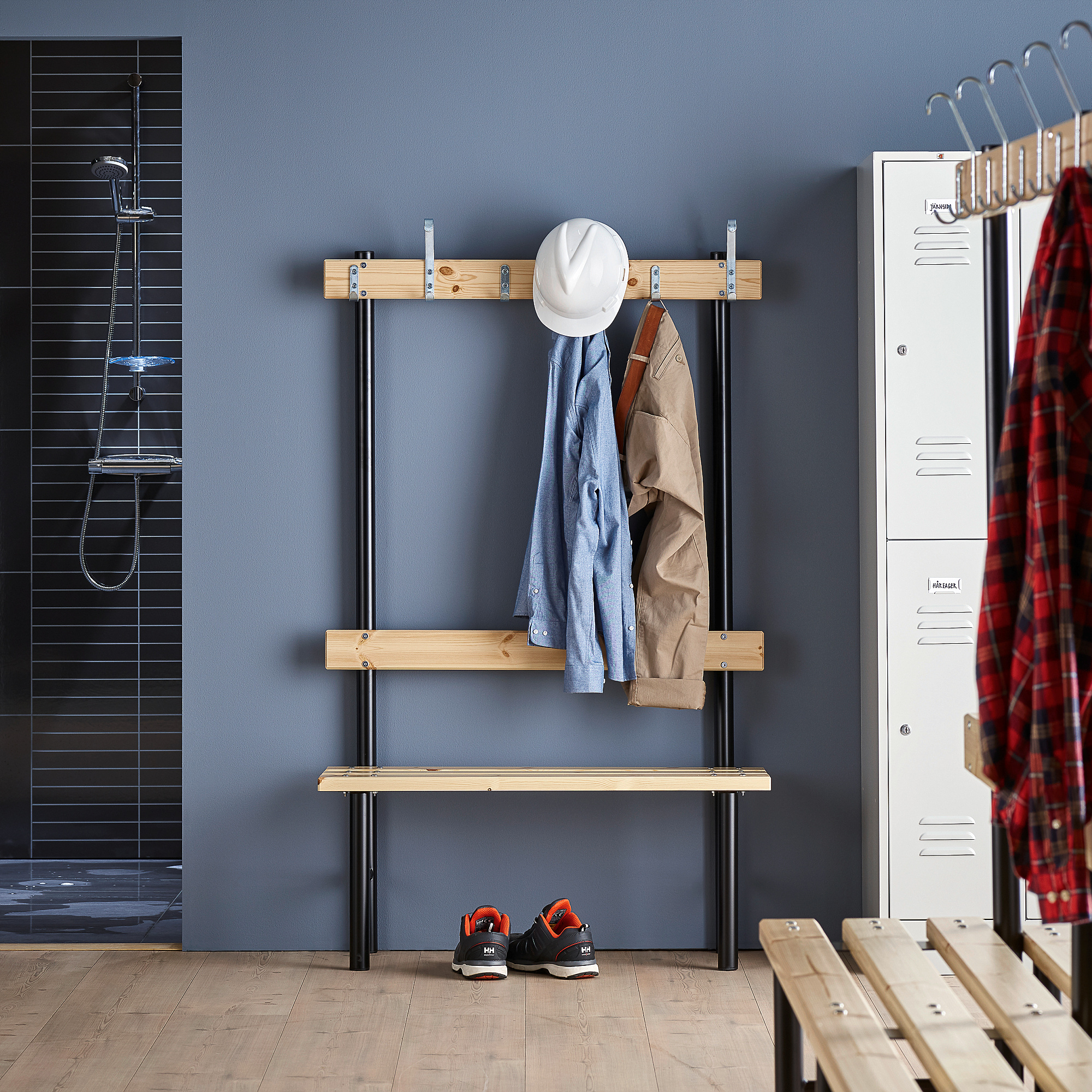 Strona główna » Szafki Fitness » Ławki szatniowe » Pojedyncza ławka Do Szatni Stadium Z Wieszakiem, 1000x400x1600 Mm, 6 Haczyków