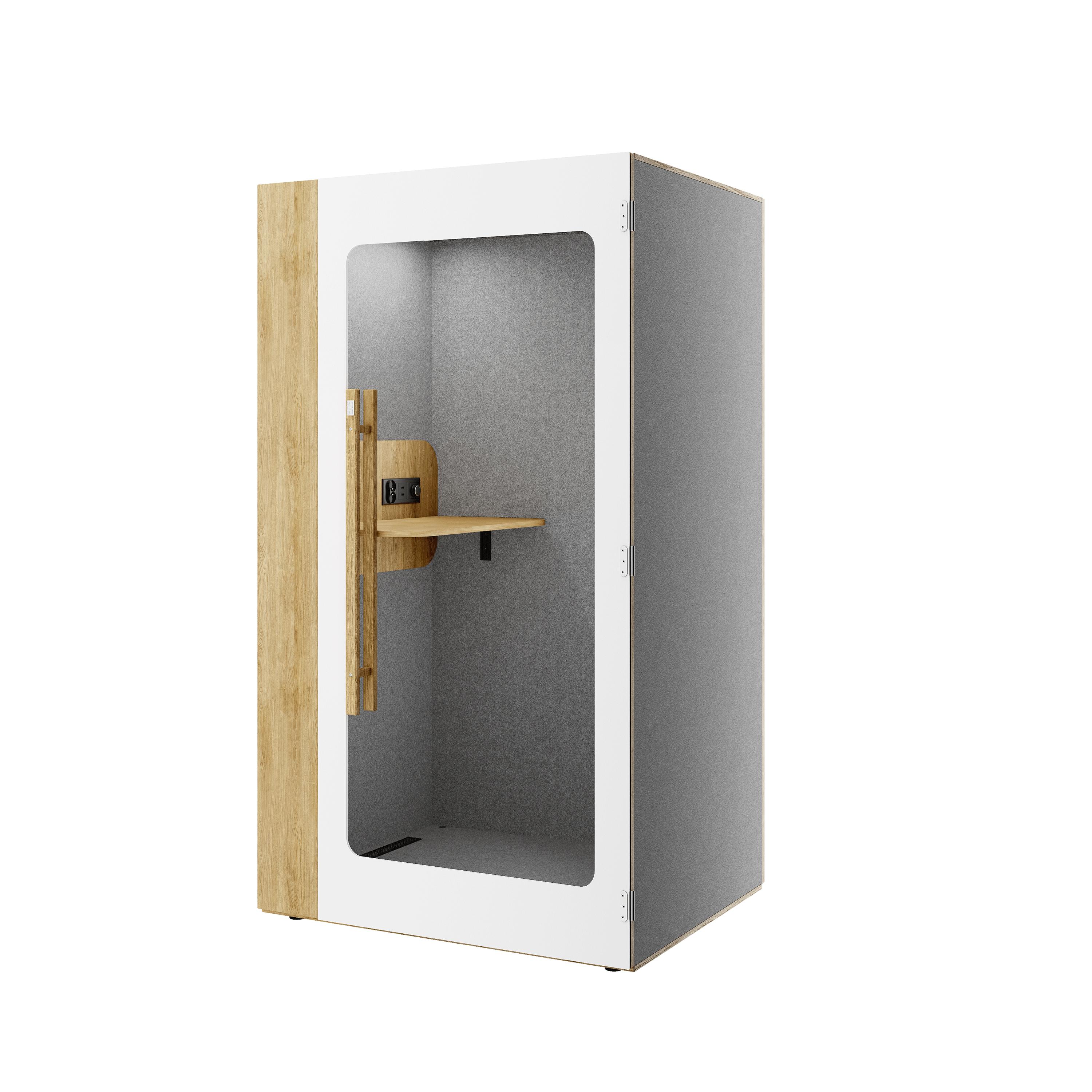 Modułowa kabina akustyczna przeznaczona dla jednej osoby. Wyposażona w wygodne, szerokie biurko, które bez problemu pomieści komputer. Zapewnia idealne warunki do prowadzenia rozmów telefonicznych i spotkań online, a także do wykonywania zadań wymagających szczególnego skupienia.