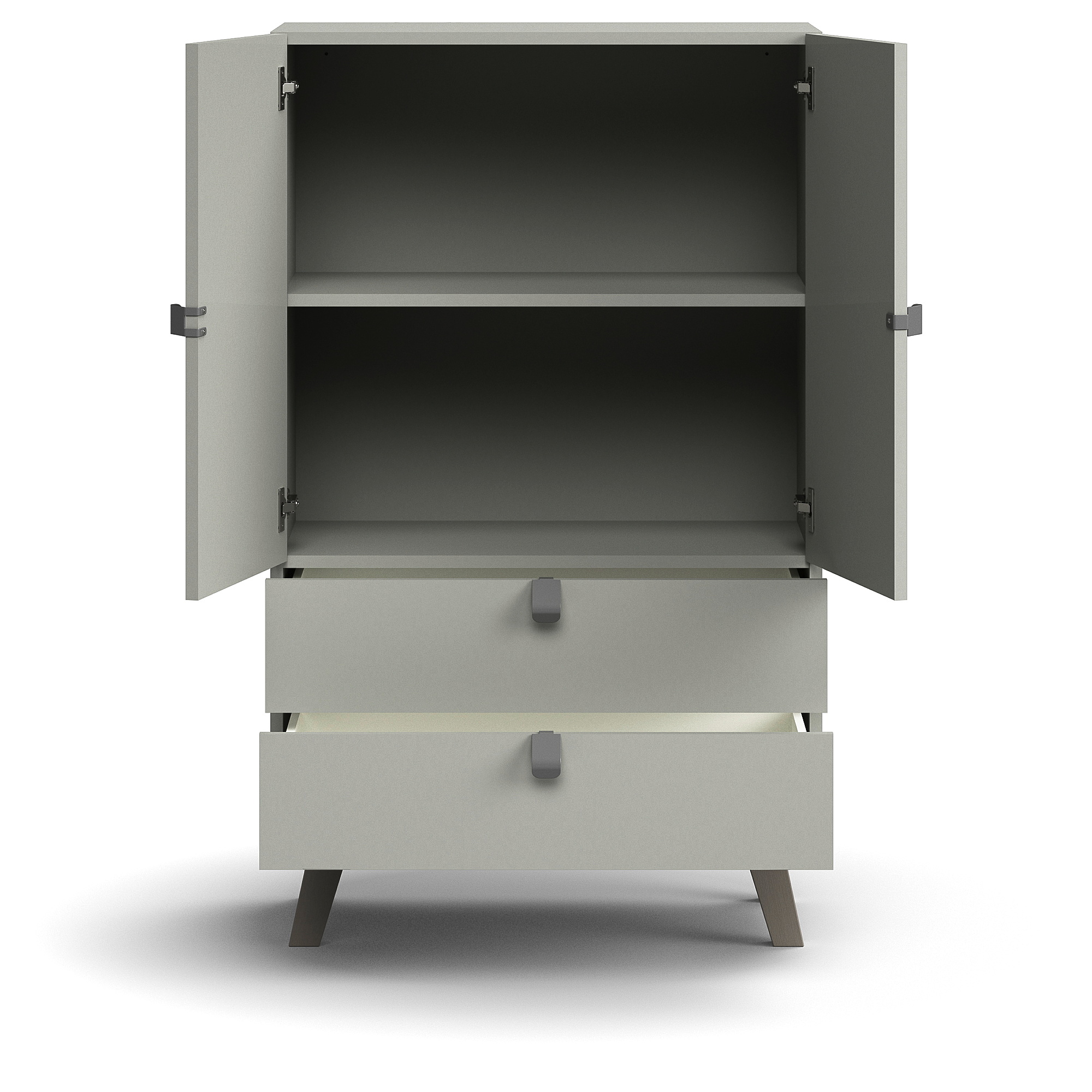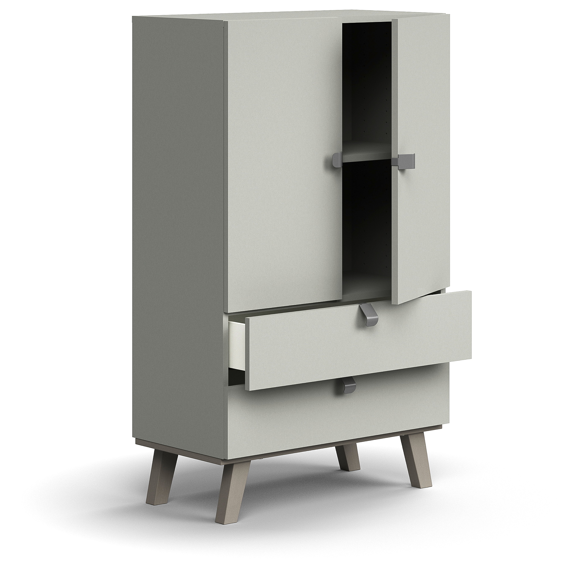 Szafa Qbus 2 Półki + 2 Szuflady, Nóżki, Uchwyty, 1332x800x420 Mm, Jasnoszary