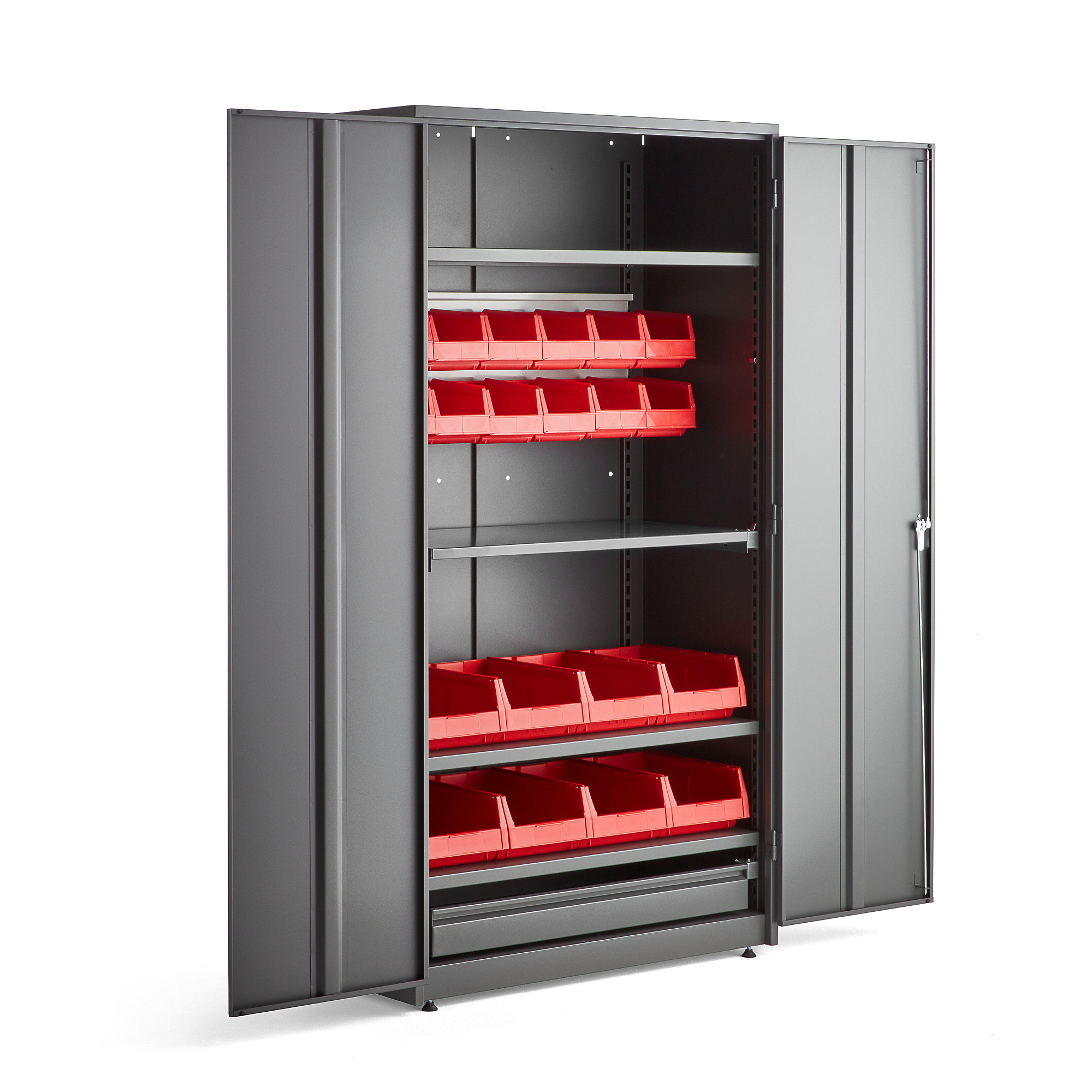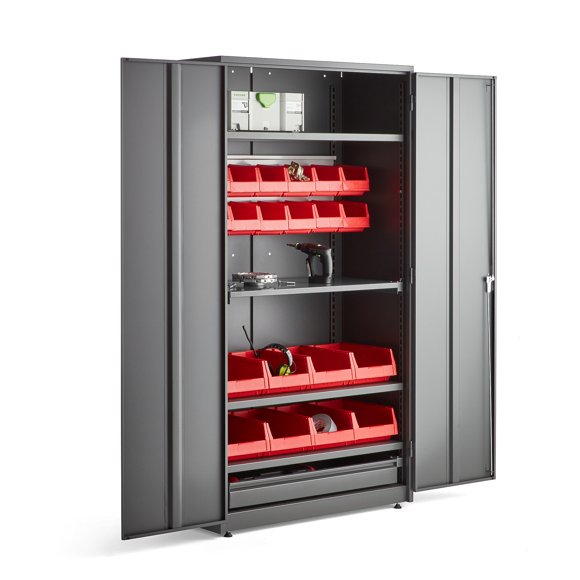 Strona główna » Przemysł i magazyn » Meble Magazynowe » Szafy narzędziowe na cokole » Szafy narzędziowe wysokie » Szafa Warsztatowa Supply z Wyposażeniem, Zamykana Na Klucz, 1900x1020x500 Mm, Szary