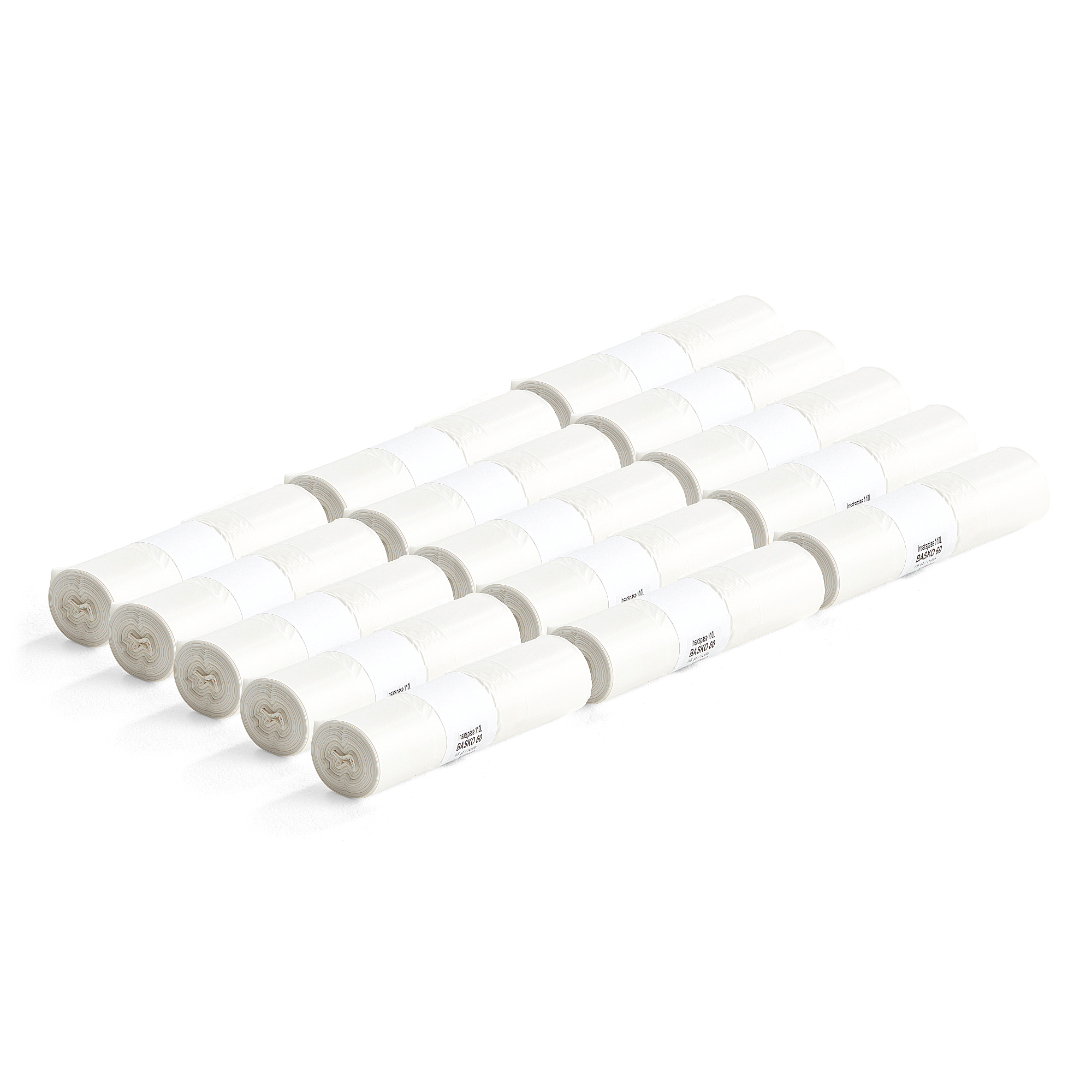 Worki Sanitarne, 15 Rolek 10 Sztuk/rolka, 110 L, Biały