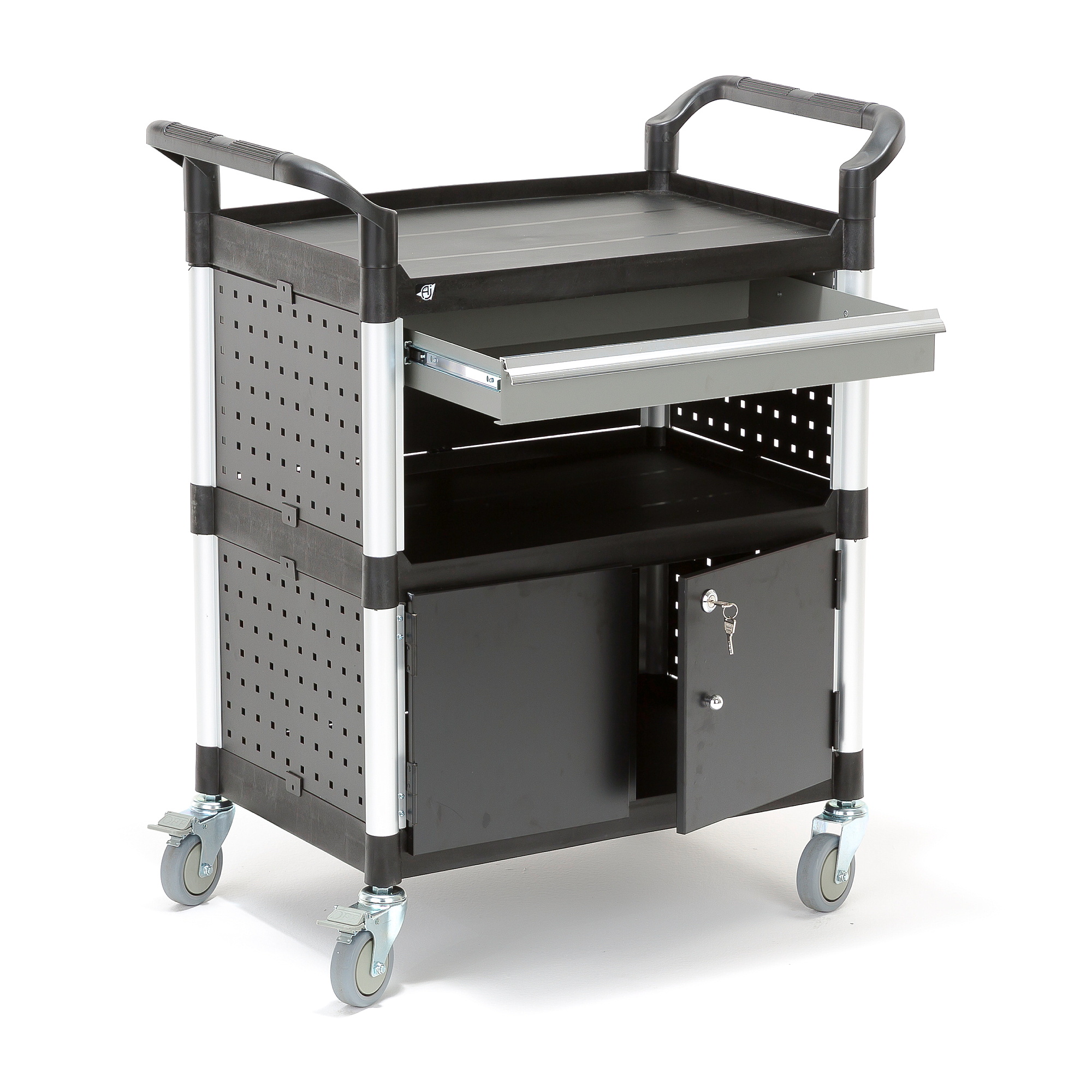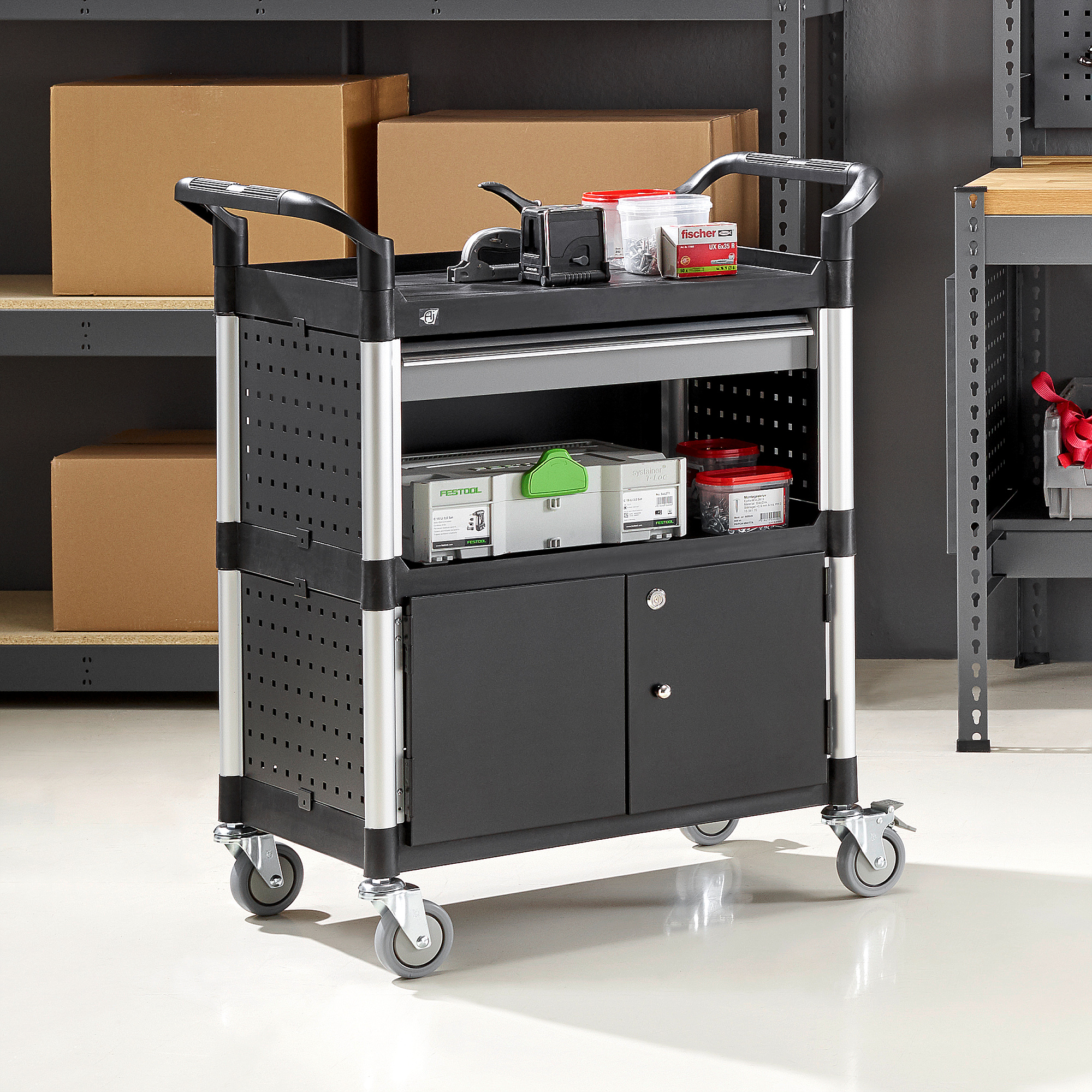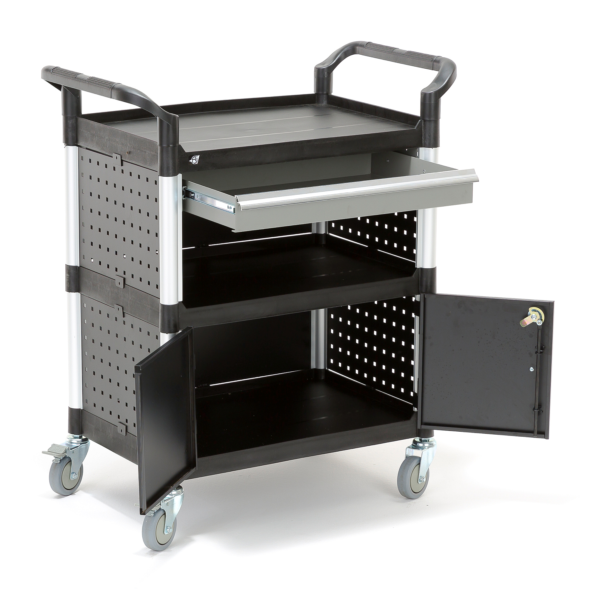 Strona główna » Przemysł i magazyn » Warsztat i zakład » Wózki warsztatowe » Wózek Narzędziowy Z Szafką I Szufladą, 2 Półki, 850x480x1000 Mm
